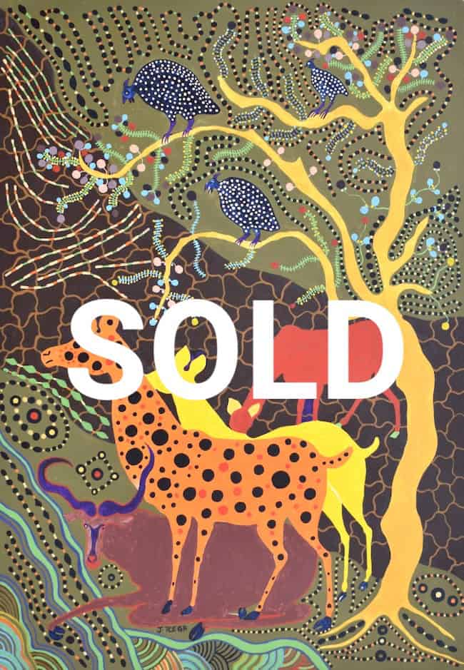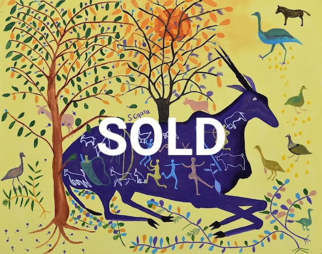 This temporary exhibition showcases a vibrant collection of oil on canvas paintings, created by talented Naro artists supported by the Kuru Art Project in Botswana.