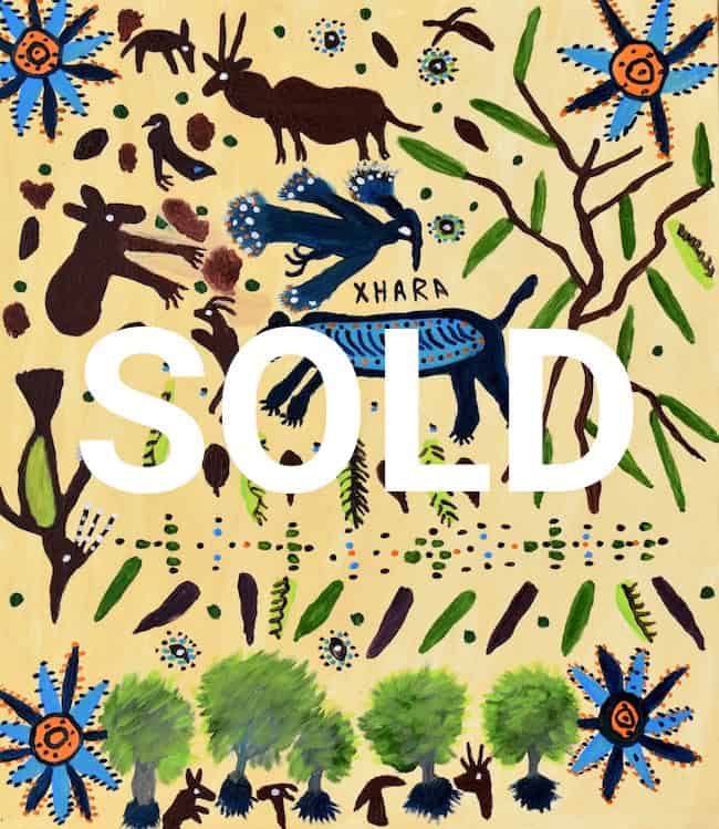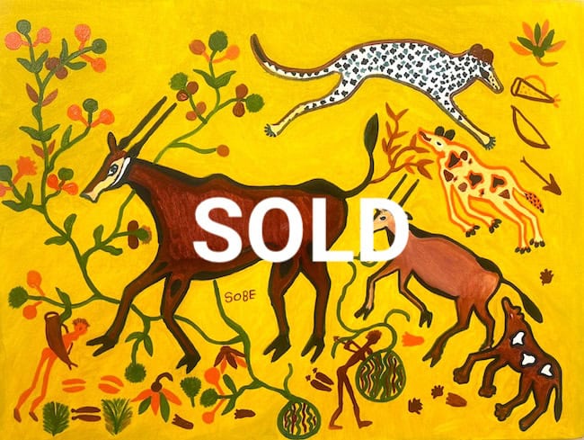 The paintings of the exhibition are available for sale, on behalf of the artists. Some may still be available when you read this, email Magdalena if you are interested in owning a beautiful artwork which also supports a San artist.
